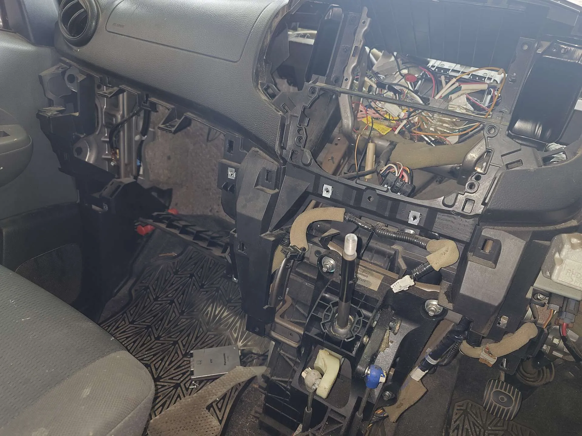 写真のように、ダッシュボード内部のパネルや配線が露出するまで丁寧に取り外していきます。